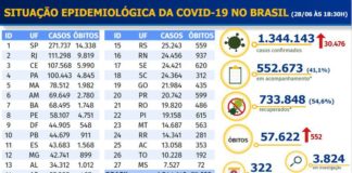 Brasil registra 552 óbitos e 30.476 novos casos de Covid-19