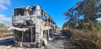 Ônibus é destruído por incêndio na BR-418, no Vale do Mucuri