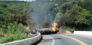 Caminhão tomba, pega fogo e motorista morre em acidente na BR-251,...