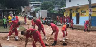 Presos auxiliam na limpeza de ruas após tragédia causada por chuvas...