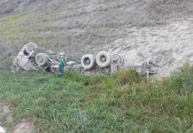 Acidente com caminhão carregado de cimento deixa três feridos na BR-116