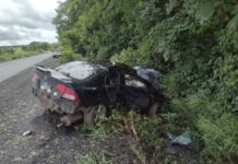 Carro bate em árvore na MGC-122