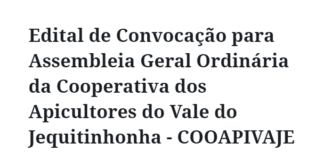 Edital de Convocação para Assembleia Geral Ordinária da Cooperativa dos Apicultores...